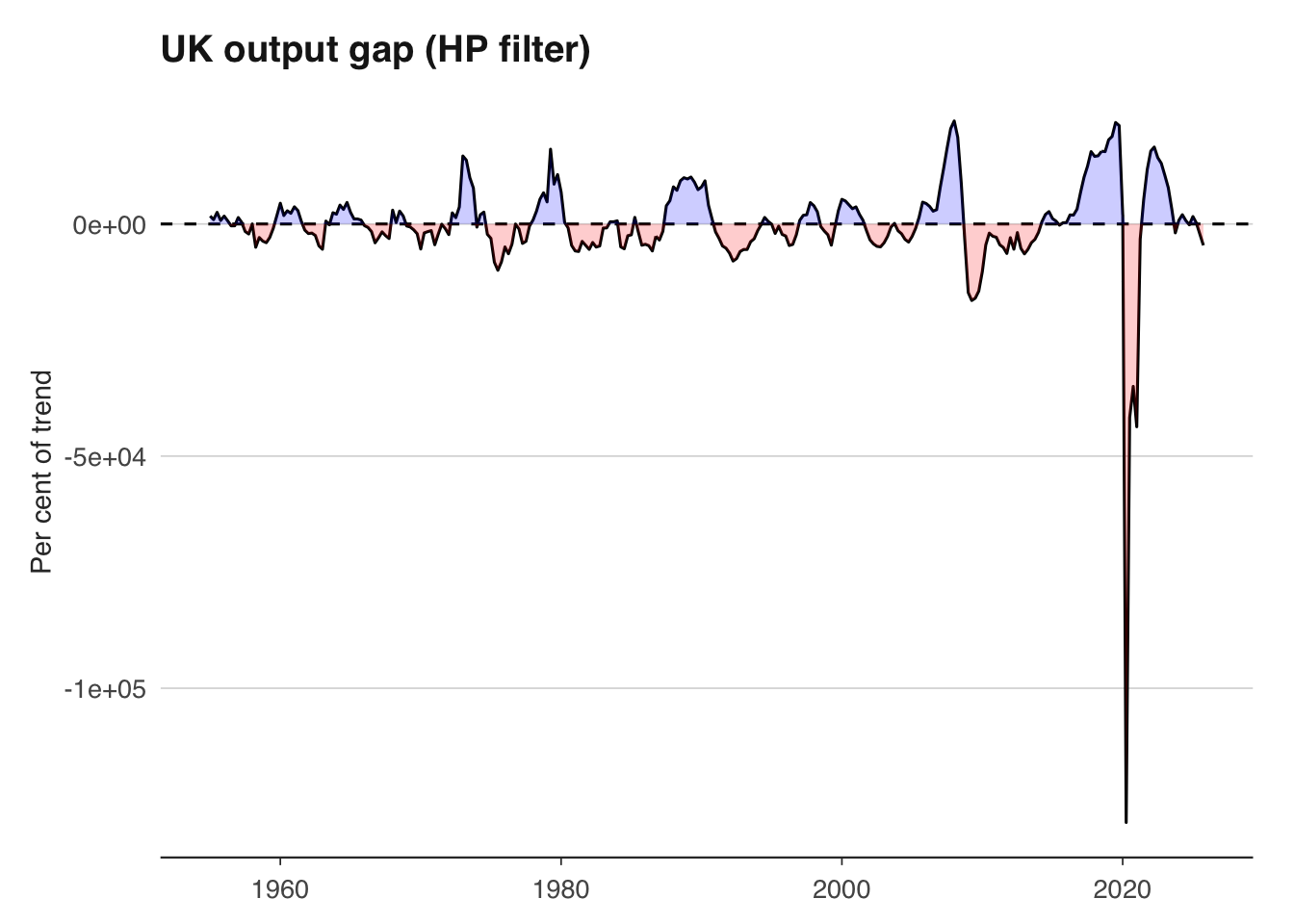 A word of caution: the HP filter has well-known limitations. It suffers from severe end-point bias — the trend estimate at the end of the sample is heavily influenced by the last few observations and is frequently revised as new data arrives. This means the output gap estimate that matters most for policy (the current one) is also the least reliable. The filter can also produce spurious cycles in data that has no true cyclical component. Despite these issues, it remains ubiquitous in policy institutions and academic work because it is simple, transparent, and provides a useful benchmark.
